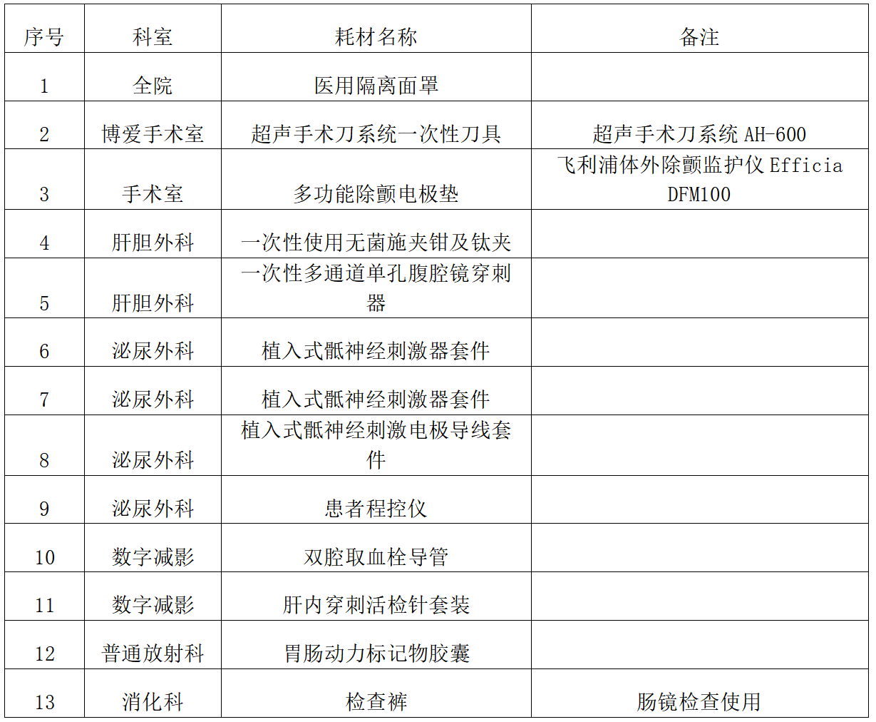 为提高医用耗材采购透明度,加大医用耗材采购前市场调研力度,使医用耗材的管理、使用达到合法、安全、有效的要求,我院本着公平、公正、公开的原则,现对下列医用耗材征集相关资料,请有相关产品及信息且具有合法合格资质的供应商与医学装备管理处联系。