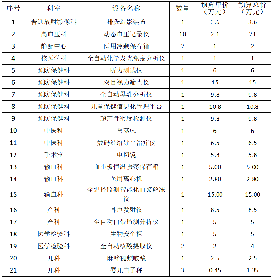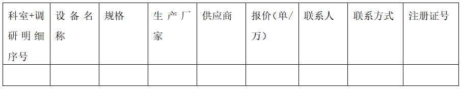 为提高医疗设备采购透明度,加大医疗设备采购前市场调研力度,使医疗设备的管理、使用达到合法、安全、有效的要求,我院本着公平、公正、公开的原则现对下列设备征集相关资料,请有相关产品及信息且具有合法合格资质的供应商与医学装备管理处联系。