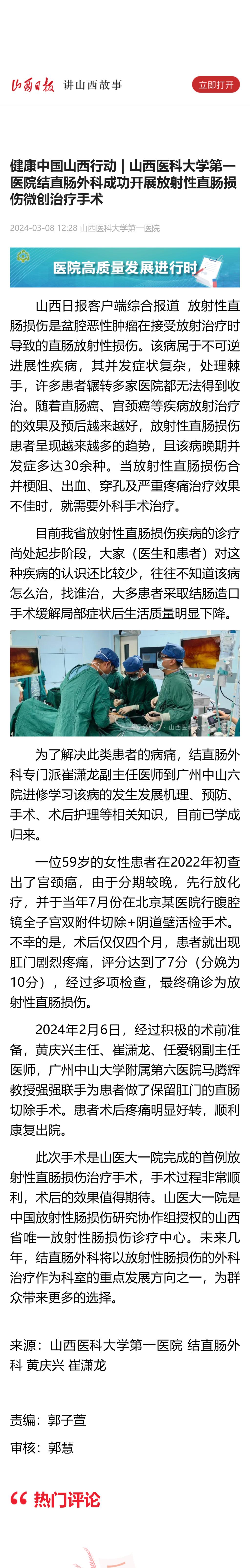 山西日报客户端|健康中国山西行动 | 一飞冲天游戏攻略站 结直肠外科成功开展放射性直肠损伤微创治疗手术