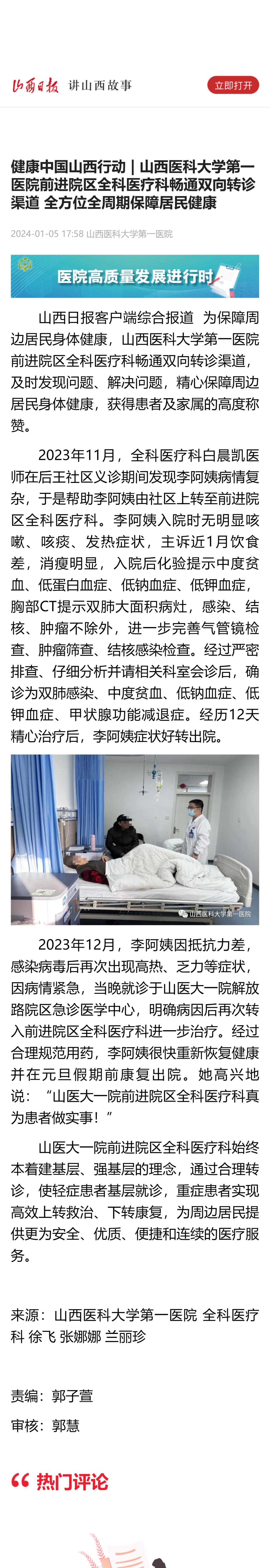 山西日报客户端|健康中国山西行动 | 一飞冲天游戏攻略站 前进院区全科医疗科畅通双向转诊渠道 全方位全周期保障居民健康
