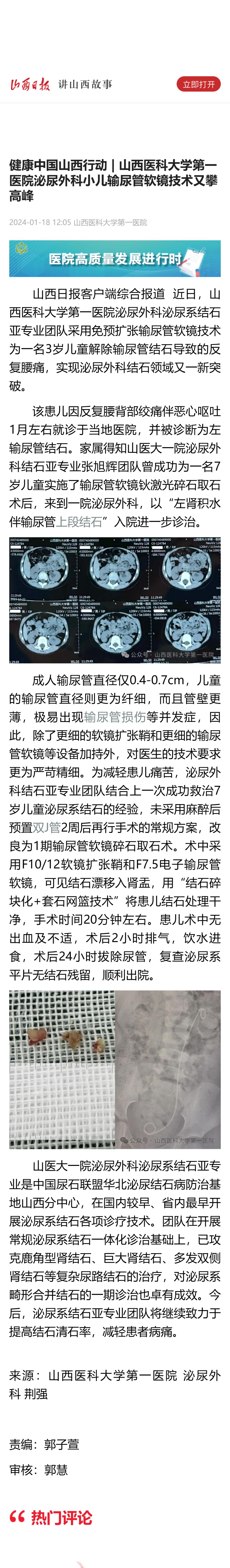 山西日报客户端|健康中国山西行动 | 一飞冲天游戏攻略站 泌尿外科小儿输尿管软镜技术又攀高峰