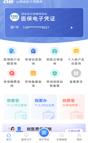 1.点击“山西医保”公众号左下角“服务大厅——我的医保”进入服务大厅。