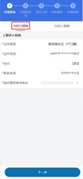 3.选择“为自己报销”或者“为他人报销”办理业务,按要求填写就诊人相关信息。为他人办理的需要上传就诊人身份证照片和代办人信息。信息填写完成后,点击阅读办理告知书进行下一步操作。