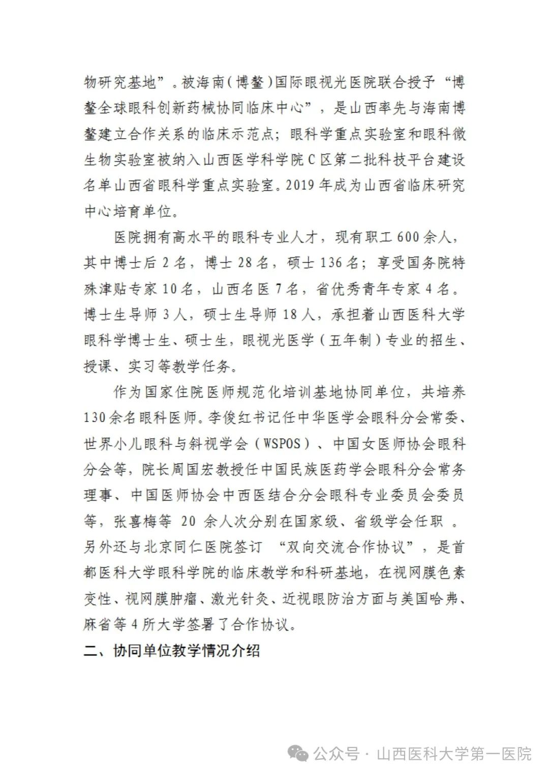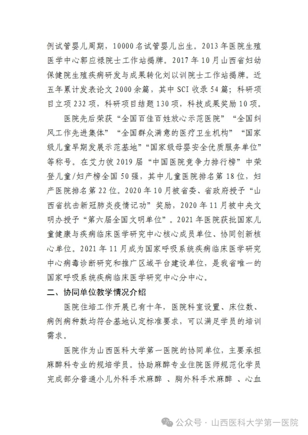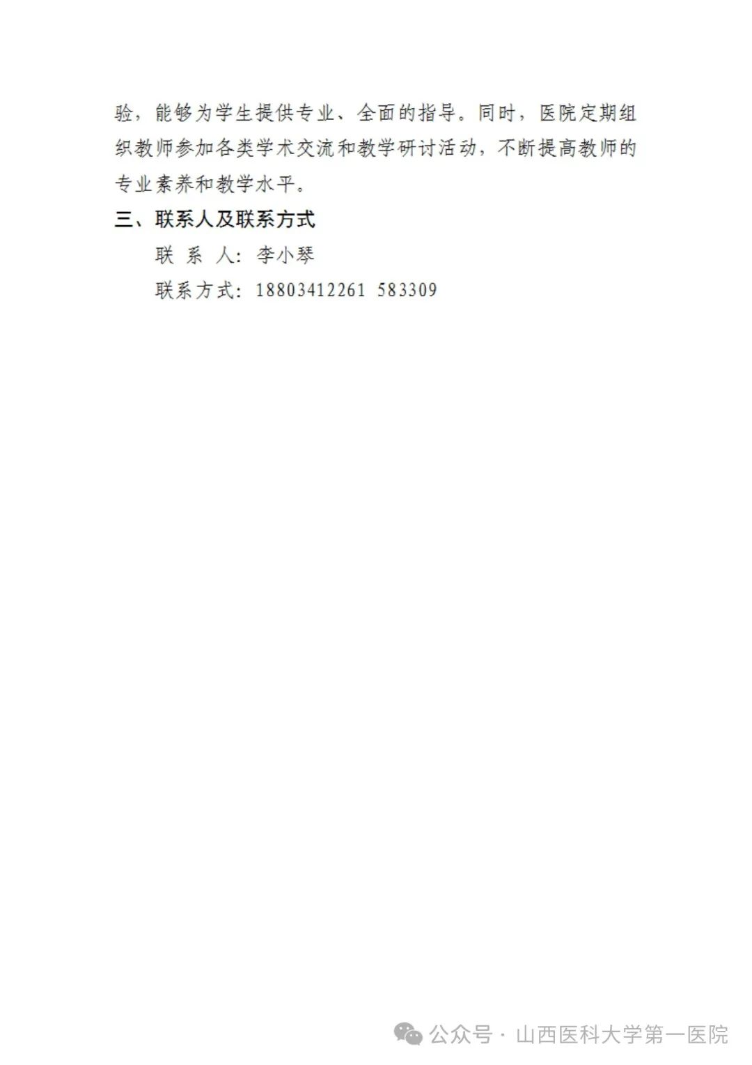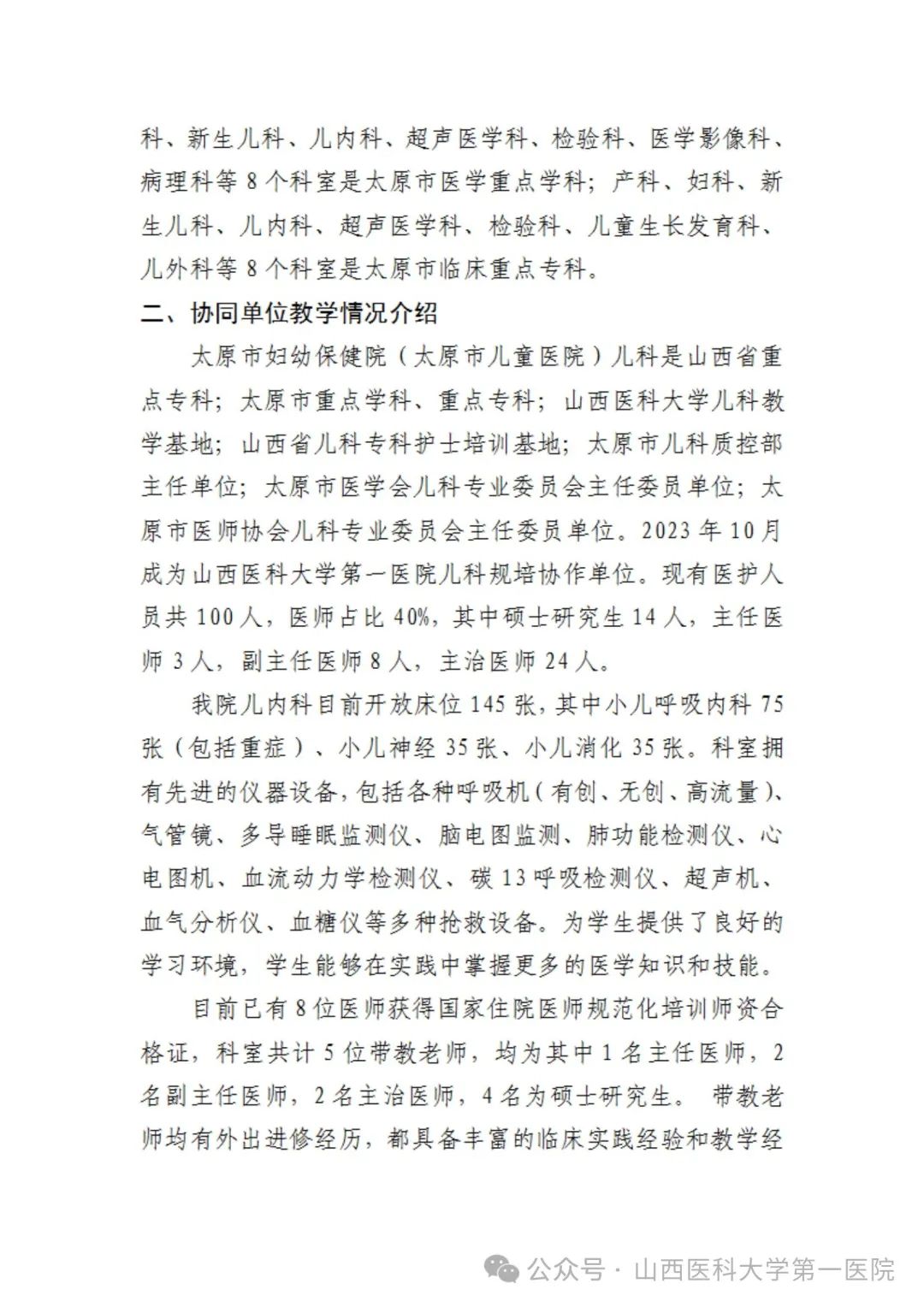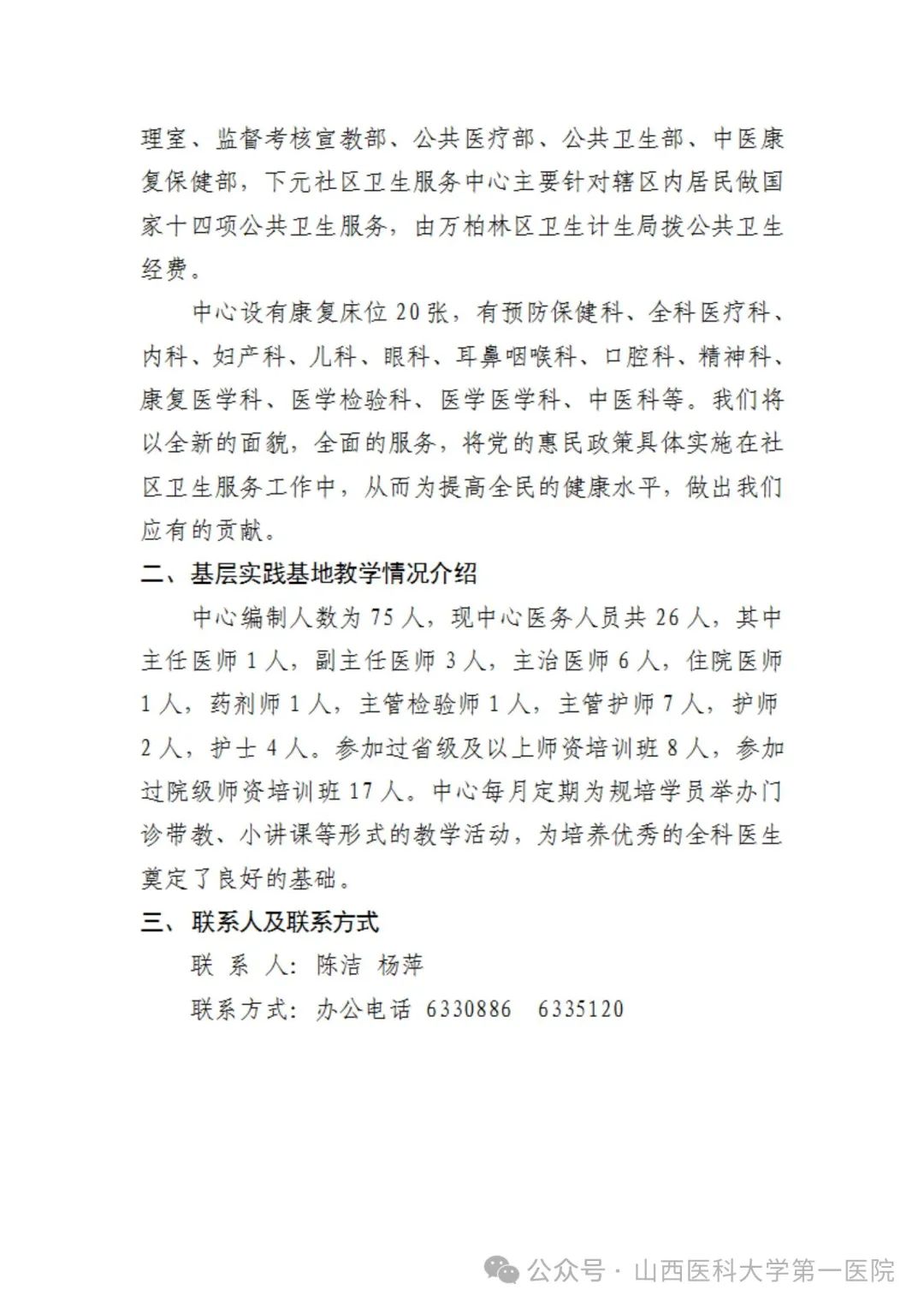 山医大一院作为国家首批住院医师规范化培训基地之一,教学资源丰富,师资力量雄厚,教学氛围浓厚,制度体系完善,为人才培养提供了有力保障。2016年被山西省卫生健康委评为“住院医师规范化培训先进基地”;2019年,9个住培专业被确定为“山西省住培专业指导委员会主委单位”;2020年,精神科专业基地被中国医师协会评为“国家重点专业基地”,内科、外科专业基地被评为“省级重点建设专业基地”。