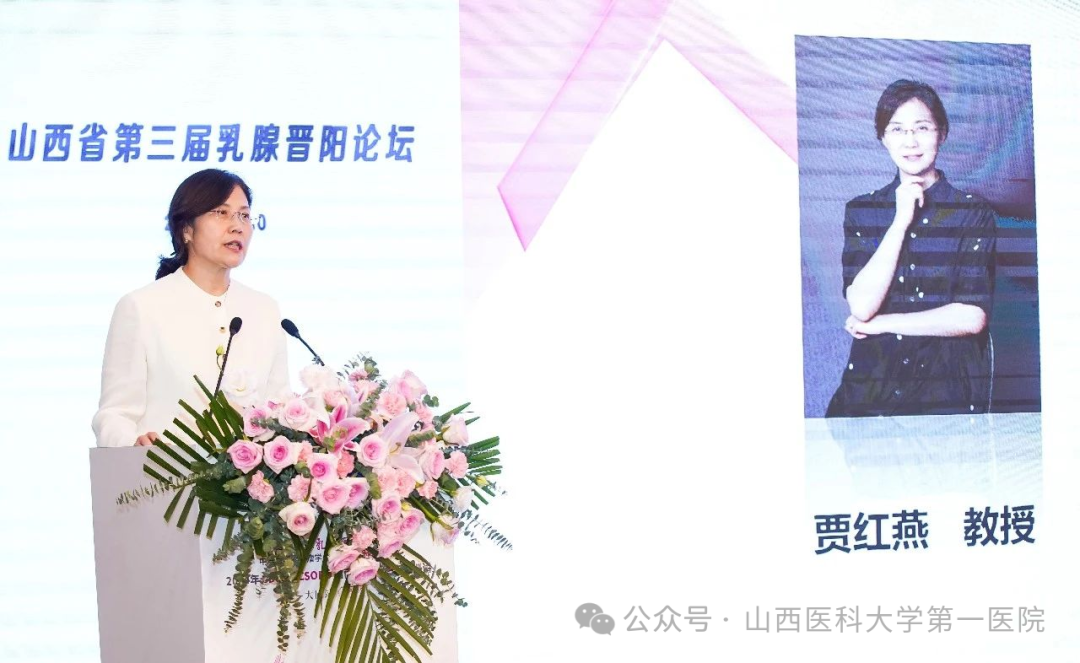 贾红燕教授在致辞中向出席会议的各位线上、线下专家们表示热烈欢迎和诚挚感谢,回顾了前两届晋阳论坛的举办盛况,介绍了山医大一院乳腺科自建科以来在临床研究、学科建设和科研创新等方面的发展概况,希望此次论坛成为学术交流的桥梁、友谊的纽带,进一步推动山西省乳腺肿瘤事业的发展与进步。