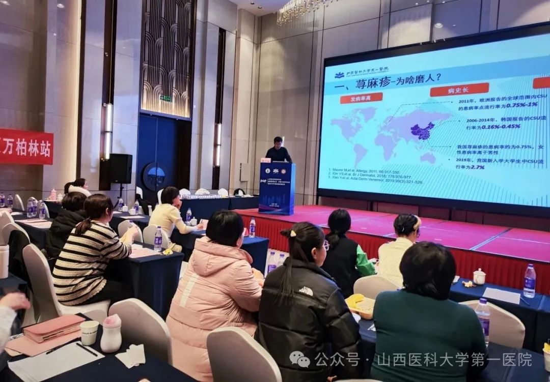 太原市万柏林区医疗集团多个社区卫生服务中心以及乡镇卫生院的20余名医护人员参加了下午的学术交流。崔红宙副主任医师详细解读了慢性荨麻疹最新相关临床指南,并对国内外最新指南进行了横向比对。李丽主治医师针对慢性荨麻疹用药进行了系统梳理,着重强调了慢性荨麻疹长病程中传统抗组胺药物与奥马珠单抗的减停药标准化流程,为广大基层医师提供了标准化建议。李莉副主任护师针对慢性荨麻疹全病程管理给出全面详尽的护理建议,并结合本科室经验详细介绍了护理工作内容,切实提高了基层医护水平。与会人员围绕奥马珠单抗耐药以及特药医保报销等热点话题进行了热烈讨论,三位授课专家进行了答疑。基层医护人员纷纷表示受益匪浅,欢迎山医大一院专家常来传经送宝,提升基层一飞冲天