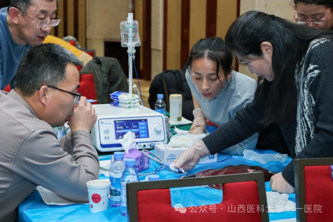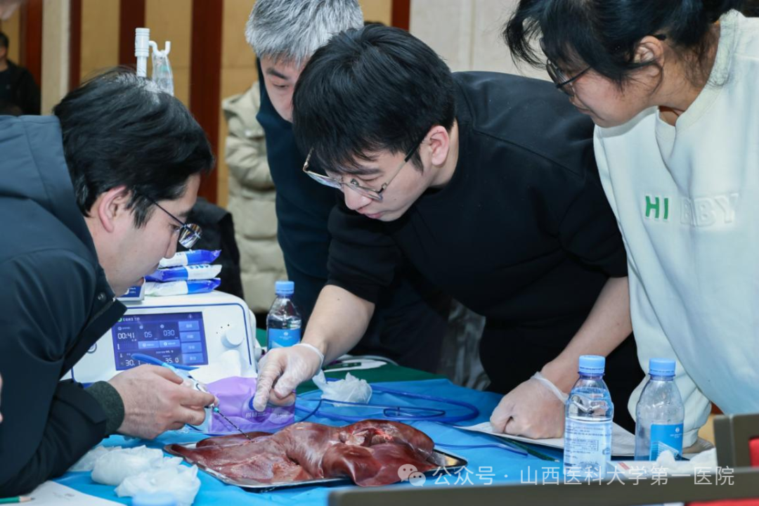 现场演练:通过离体猪肝进行现场操作演练,让与会者亲身体验并掌握热消融技术的操作技巧,极大地提升了实践能力和学习效果。