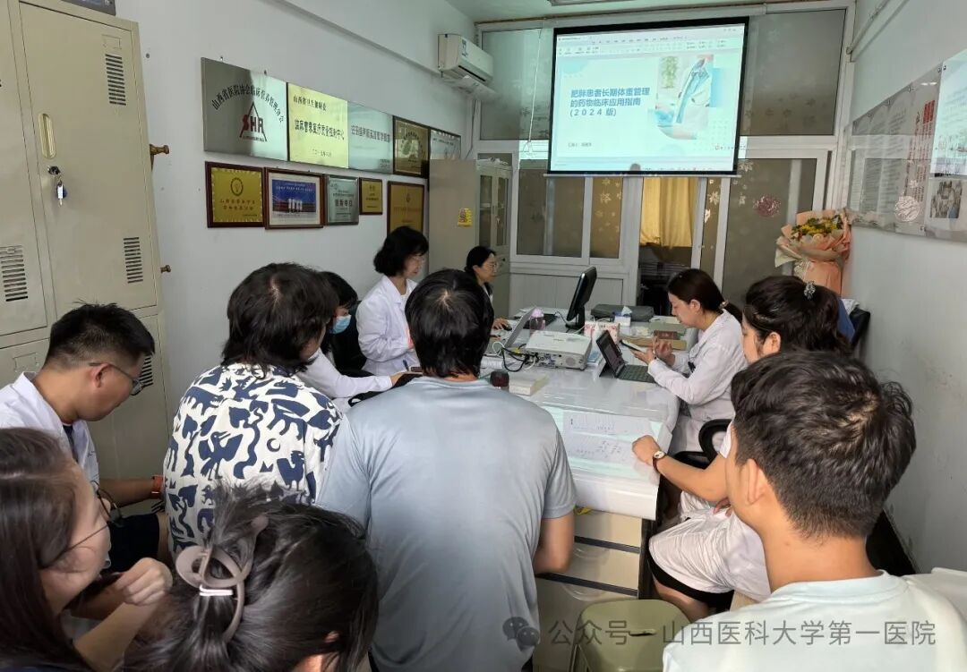 临床营养科医师每周三下午业务学习,追踪国际前沿,系统梳理全球最新减重研究进展,聚焦营养代谢机制,精研减重方案,深入学习新型减重药物指南,严格把握适应症与风险管控,以循证医学为依据,整合生活行为方式、营养、运动、药物、心理等多核心,打造规范化、精准化的医学营养减重流程,致力于为患者提供全周期的营养健康服务。