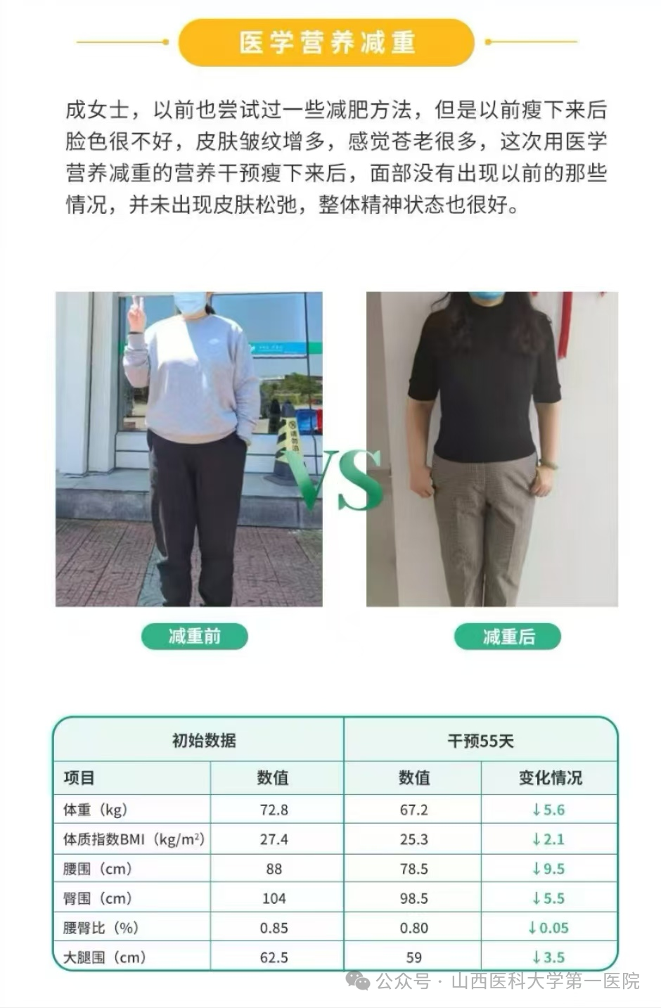 随着超重和肥胖问题日益突出,科学减重成为全民健康的重要课题。山医大一院临床营养科减重门诊深耕体重管理领域9年,由7名资深营养师组成专业团队,年均帮助2000余名患者成功减重,回归健康生活。值此“国家体重管理年”之际,我们始终秉持先进的减重理念:健康体重,不是数字的较量,而是生命的升华。始终坚持“科学营养,健康瘦身”!