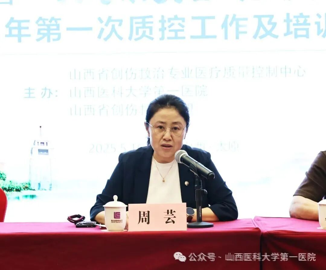 主办的山西省创伤救治专业质控中心2025年质控工作第五次会议及培训在太原召开,山医大一院院长周芸,山西省卫生健康委医政处副处长赵宏,山医大一院医务部部长黄河和山西省创伤救治专业医疗质量控制中心主任冯贵龙出席,来自全省各地市的240余名医务人员参加。会议由黄河部长主持。