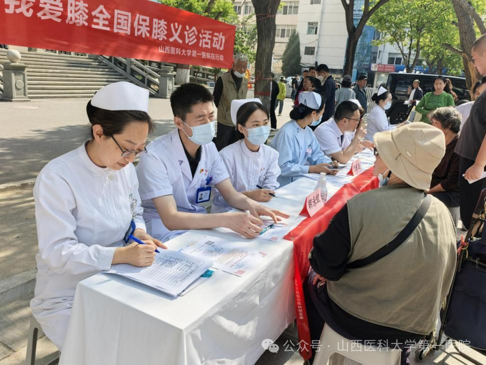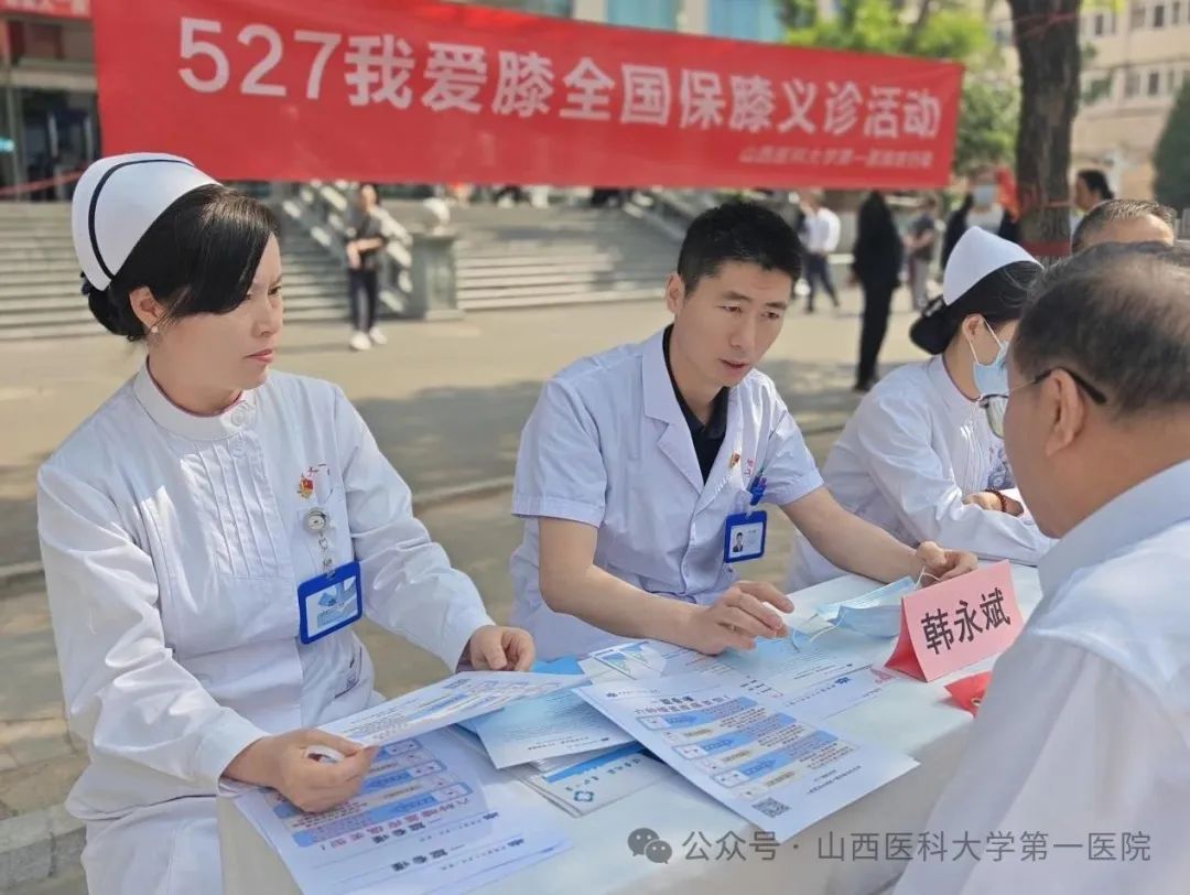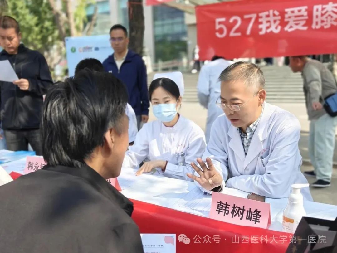 骨科组织关节、运动医学专家,膝关节护理专家在1号住院楼前小广场举行了“5.27 我爱膝”主题公益活动。