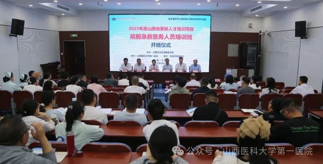 承办、太原市急救中心协办的第五期“山西省紧缺人才——院前急救医务人员培训班”在护校一层规培教室开班,山西省卫生健康委应急处处长张朝华,山医大一院院长周芸,太原市急救中心主任胡润保,山医大一院医务部部长黄河,急诊医学中心主任郭庚、主任医师冀兵、冯贵龙出席,来自各市、县医疗机构选派的50名医护人员参加培训。开班仪式由郭庚主持。
