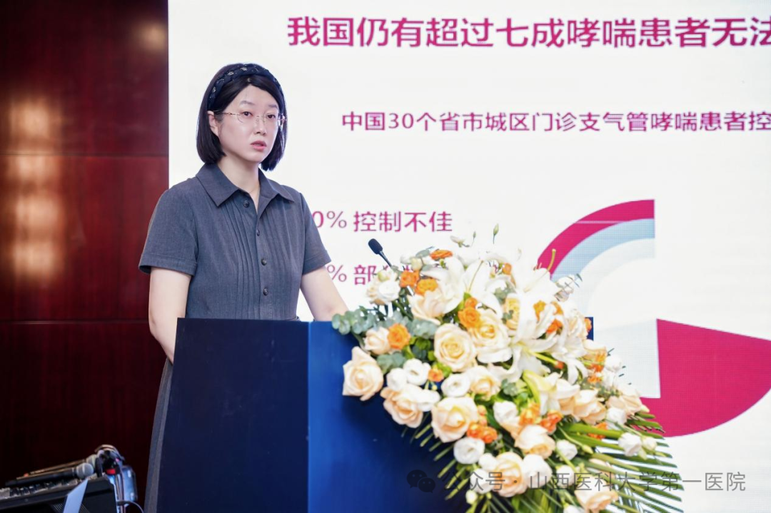 山医大一院护理部主任商临萍致辞,强调了呼吸慢病管理的重要性,护理人员在长期随访和患者教育中扮演着不可替代的角色。