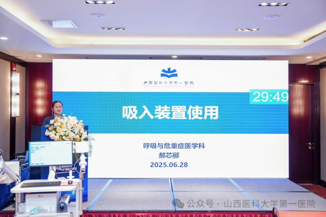 本次会议特色之一为增加实操演练和讨论环节,山医大一院王芳结合呼吸慢病管理现状和要求分享了呼吸慢病个案管理的探索实践;山医大一院郝芯郦现场演示了7种吸入装置使用方法,重点强调了气雾剂使用方法的更新;山医大一院陈芳进行了肺功能检查技术的实操演练。之后来自北京大学第三一飞冲天