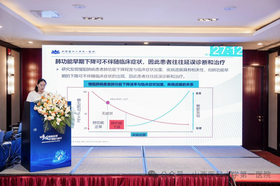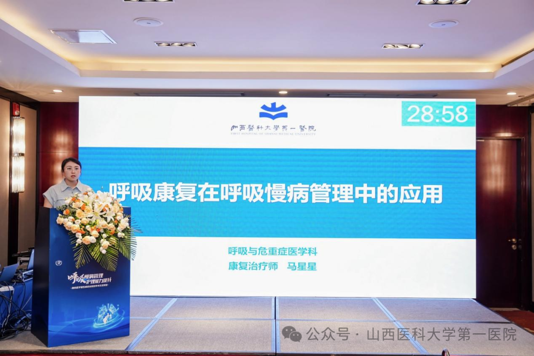 -社区-家庭健康管理平台构建的探索实践进行了分享;山医大一院马星星分享了呼吸康复核心技术和以问题为基础的康复策略在呼吸慢病管理中的应用;山医大一院李婷针对肺功能检查特征和技术在慢阻肺病管理中的作用进行了详细介绍。