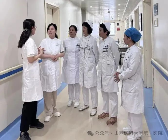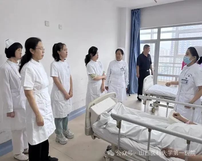 骨科提升诊疗能力与服务效率。韩树峰、孙海飚两位专家分别就专业发展方向和绩效考核机制进行了探讨;护士长赵爱玲介绍了“预住院+日间手术”管理模式,并深入病房实地指导,包括股骨头置换术后的康复观察、功能锻炼及助行器使用等环节,同时对护理交接班和文书书写提出了切实可行的建议。专家团队还针对科室提出的疑难病例和手术规范化问题给予了现场解答和专业指导。