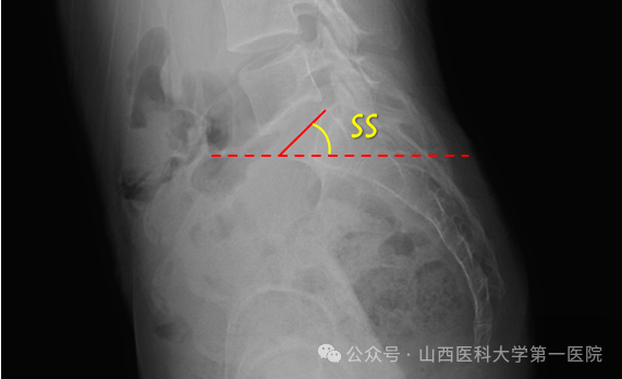骶骨倾斜角定义为S1上终板与水平线之间的夹角,与腰椎前凸有很明显的关系。SS越垂直,腰椎前凸角越大,反之亦然。