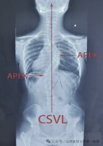顶椎是评估脊柱畸形的常用指标,对手术策略制定具有重要指导意义,具有如下特点:顶椎是偏离骶骨中垂线(CSVL)最远的椎体;顶椎可以是椎体也可以是椎间盘;顶椎在横断面上旋转程度最大。