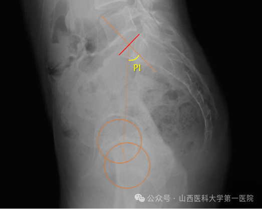 骨盆入射角定义为经骶骨上终板中点做垂直于骶骨上终板的垂线,再经骶骨上终板中点与双侧股骨头中心连线中点作直线,两直线的交角。它是一个解剖学参数,取决于骨盆形状,成年后固定,与脊柱曲线关系密切,且不受姿势的影响,是调节脊柱-骨盆矢状面平衡的重要因素。PI值大小反映了骨盆对矢状位失衡的代偿能力,PT值越大,理论上骨盆对矢状位失衡的代偿能力越强。