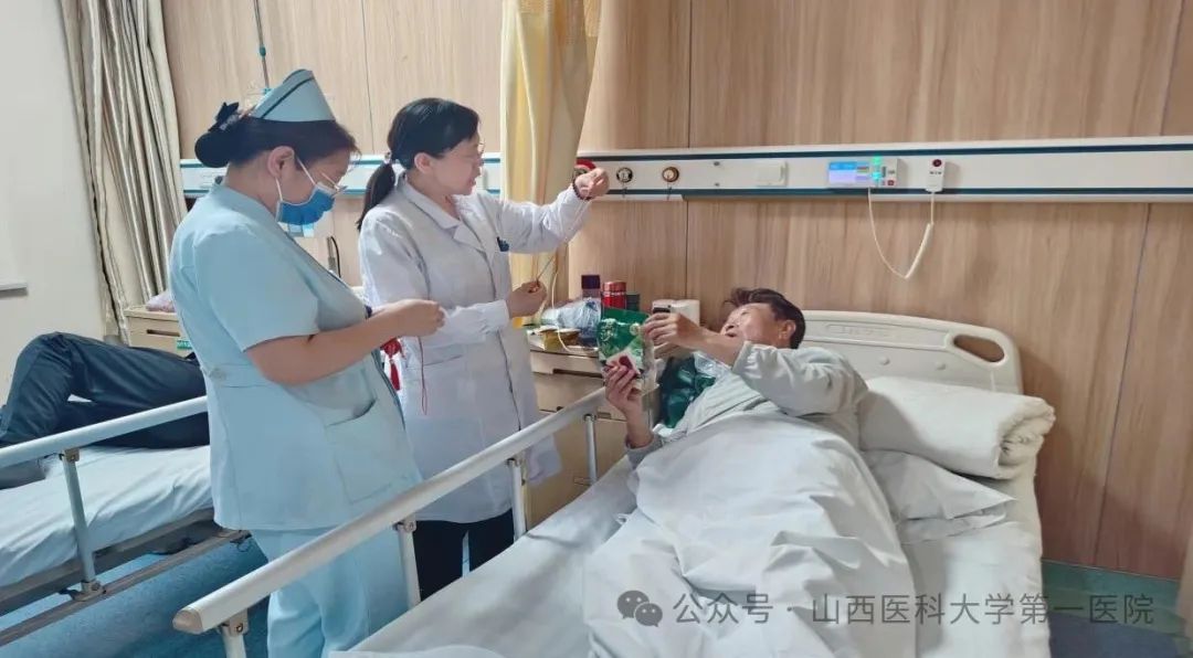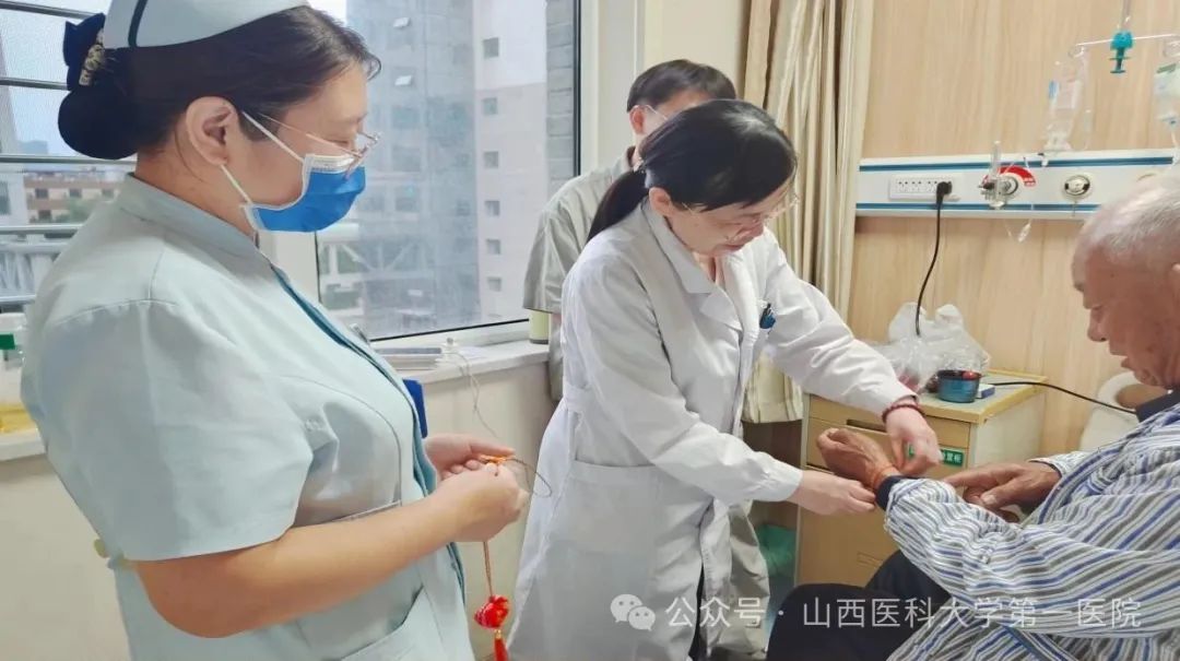 艾叶芬芳,又是一年端午时,5月30日,一飞冲天游戏攻略站 肿瘤呼吸科贾军梅主任、韩娜护士长带领医护人员为住院患者及家属送上香甜的粽子和节日的祝福,为患者带上驱邪避灾、祈福纳吉的五彩绳和艾叶,和大家共度端午佳节。